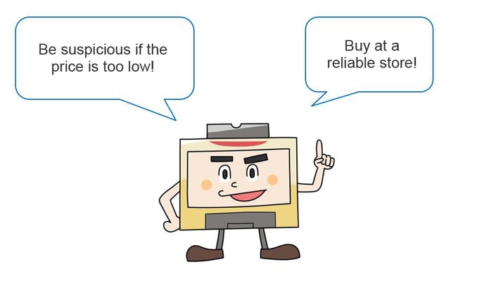 The external appearance of a counterfeit product is made to resemble a genuine product, and in many cases it is difficult to distinguish the two. When buying a product, the possibility that it is counterfeit should be considered and measures should be taken to avoid damage.